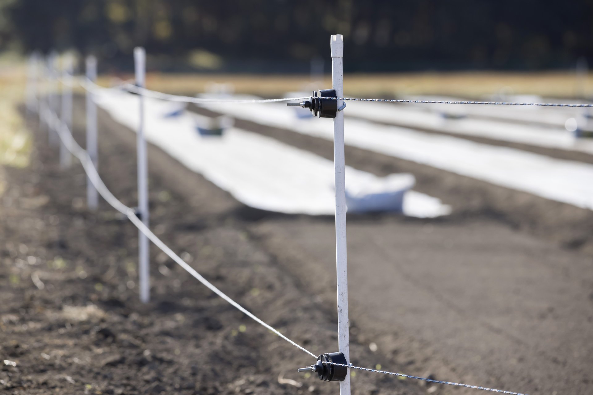 大切な農作物を動物から守るための電気柵。電流を流して痛みを与えることで、動物に電気柵を危険だと学習させます。電気柵は対策したい動物の種類に合わせて選ぶ必要があるため、まずはご相談ください。最適なご提案をいたします。