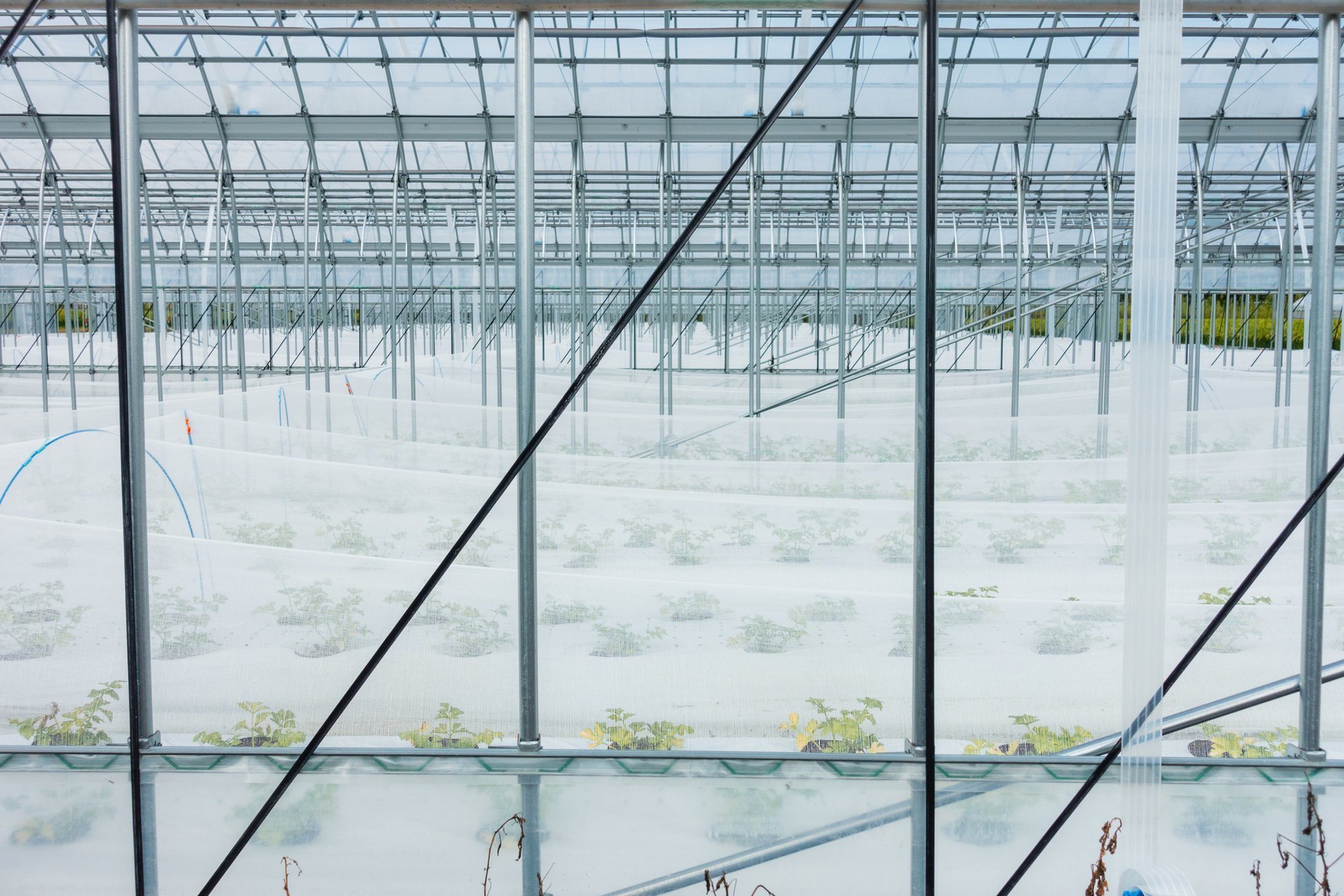 鉄骨ハウスとは、アーチ型のパイプではなく、角パイプを主骨材とした屋根型のハウスのこと。従来のタイプに比べて耐雪・耐風性に優れているのが特長です。また、連棟型にすることで広い作業面積の確保が可能に。大規模な栽培にも適しているハウスです。